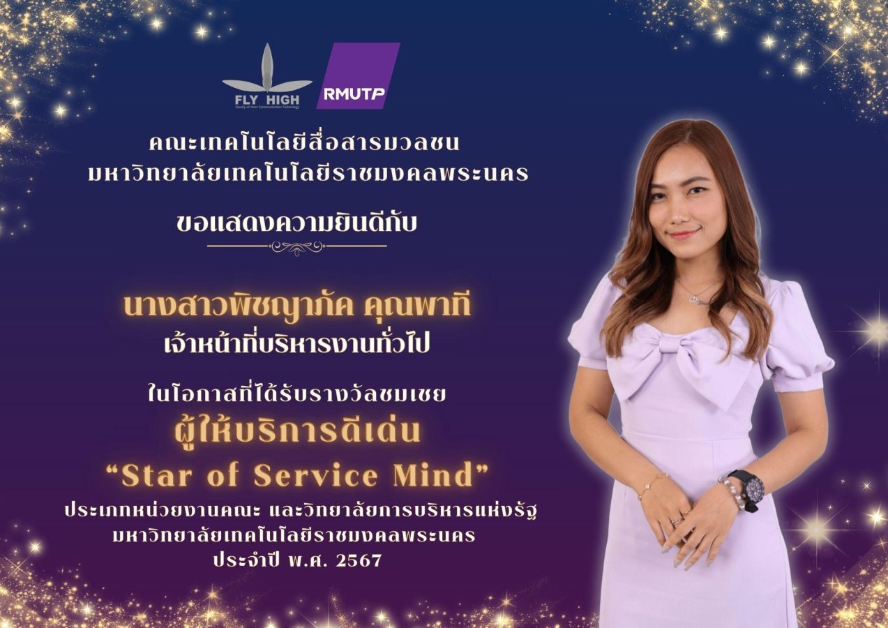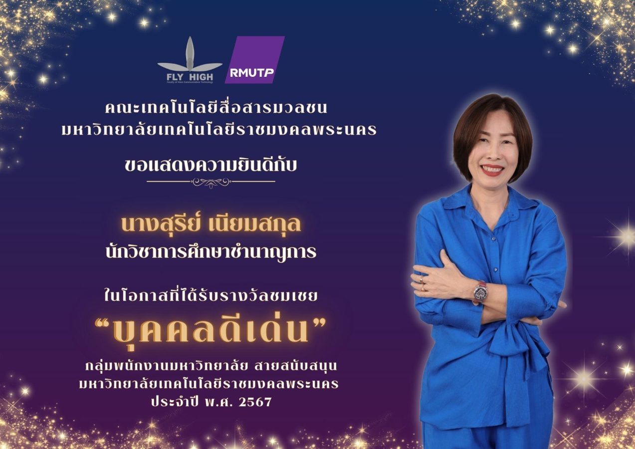 คณะเทคโนโลยีสื่อสารมวลชน ราชมงคลพระนคร ขอแสดงความยินดีกับบุคลากร ในโอกาสที่ได้รับรางวัลเชิดชูเกียรติ ประจำปี พ.ศ. 2567