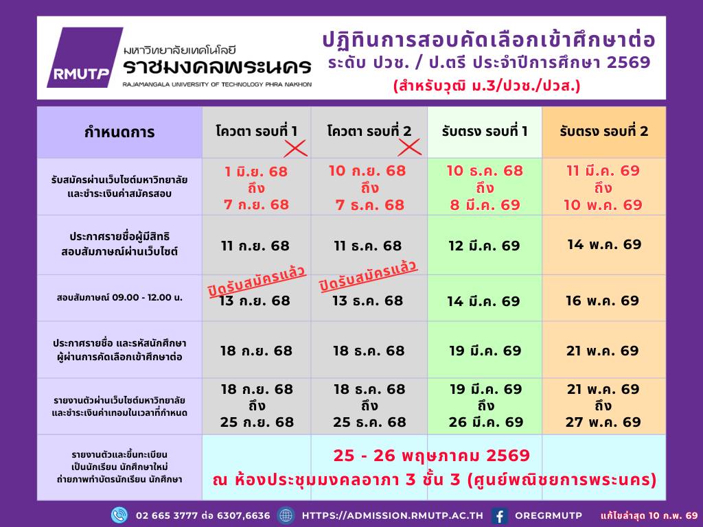ปฏิทินการรับสมัครสอบคัดเลือก คณะเทคโนโลยีสื่อสารมวลชน